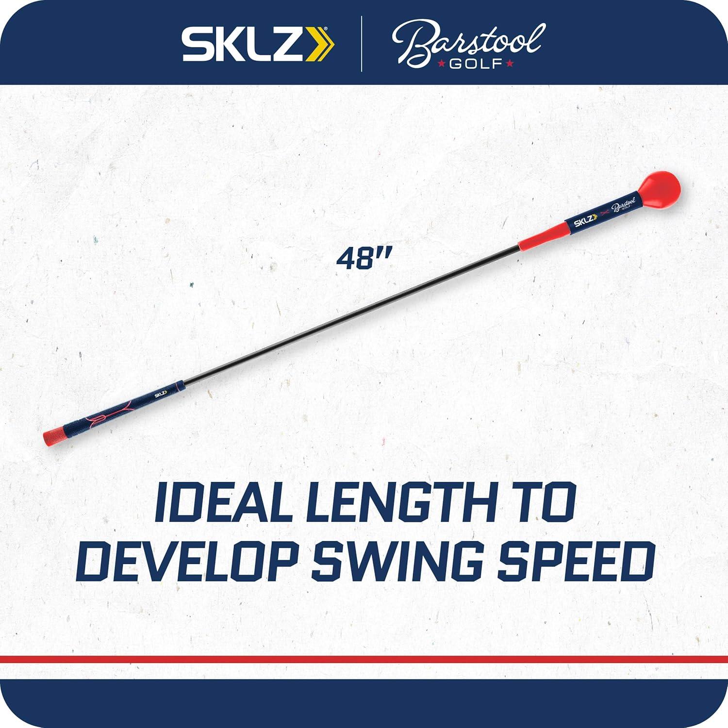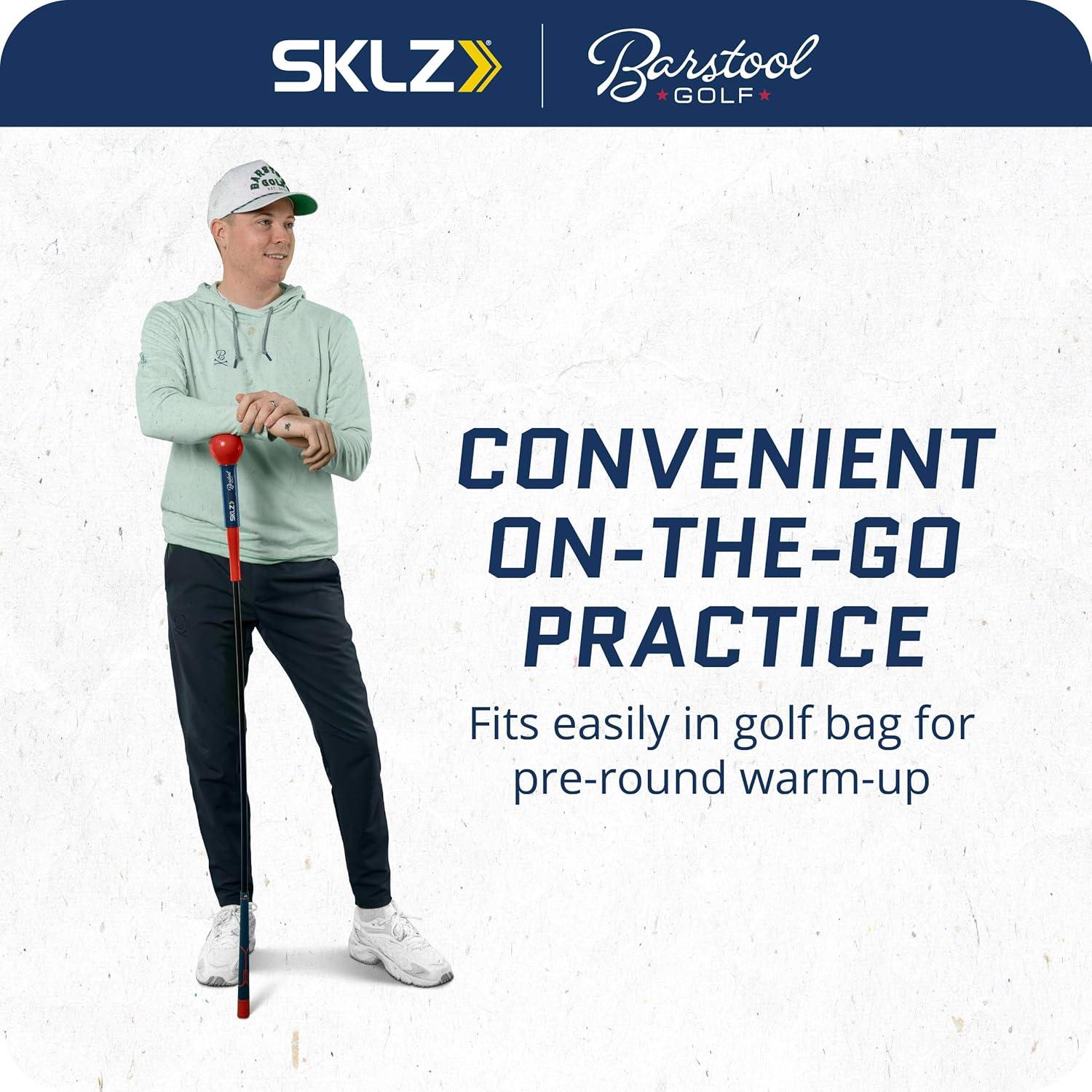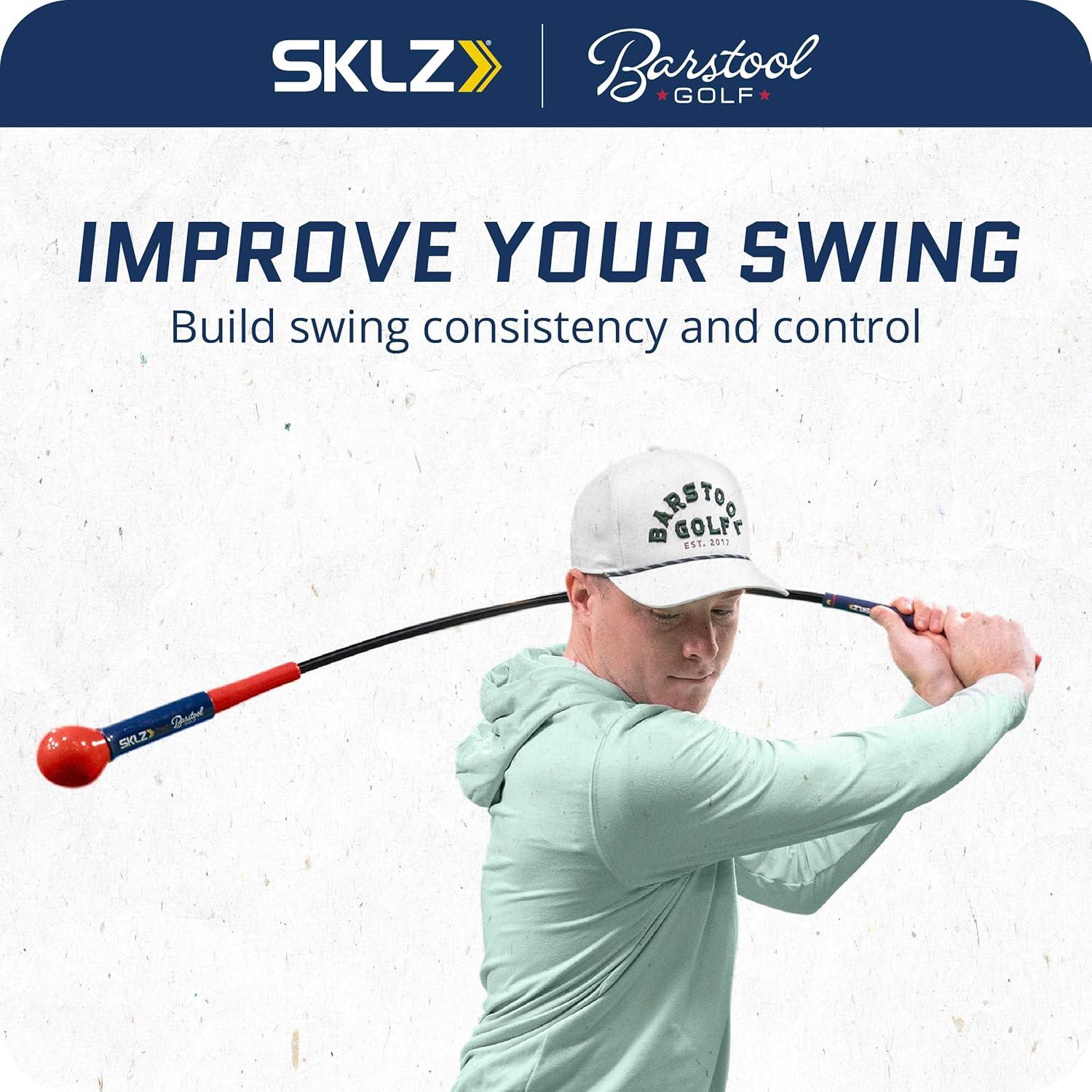 The SKLZ | Barstool Golf Gold Flex Swing Trainer 48″ collaboration is a cutting-edge golf training tool engineered for enhancing swing mechanics and overall performance on the course. This unique trainer stands out with its exaggerated shaft flex, which introduces a slight lag at the top of the backswing, crucial for establishing the ideal swing tempo. This feature, combined with the weighted ball at the end, encourages a smoother, more consistent swing, aiding golfers in gaining extra distance with each shot. At 48 inches, the Gold Flex is longer than a standard driver, a design choice specifically aimed at developing greater swing speed and ensuring the swing stays on plane. This length is ideal for improving ball-striking consistency and accuracy. The weighted head further assists in proper weight transfer, building balance and power through impact. Convenient and versatile, the SKLZ Gold Flex Swing Trainer fits easily into a golf bag, making it legal to carry on the course. It serves as a low-impact stretching tool for pre-round or range warm-ups. The grip guide is an added bonus, helping players work on building muscle memory for the correct grip, a foundational aspect of a successful swing. This collaboration between SKLZ and Barstool Sports is more than just a training tool; it's a comprehensive approach to refining and mastering the art of golf.