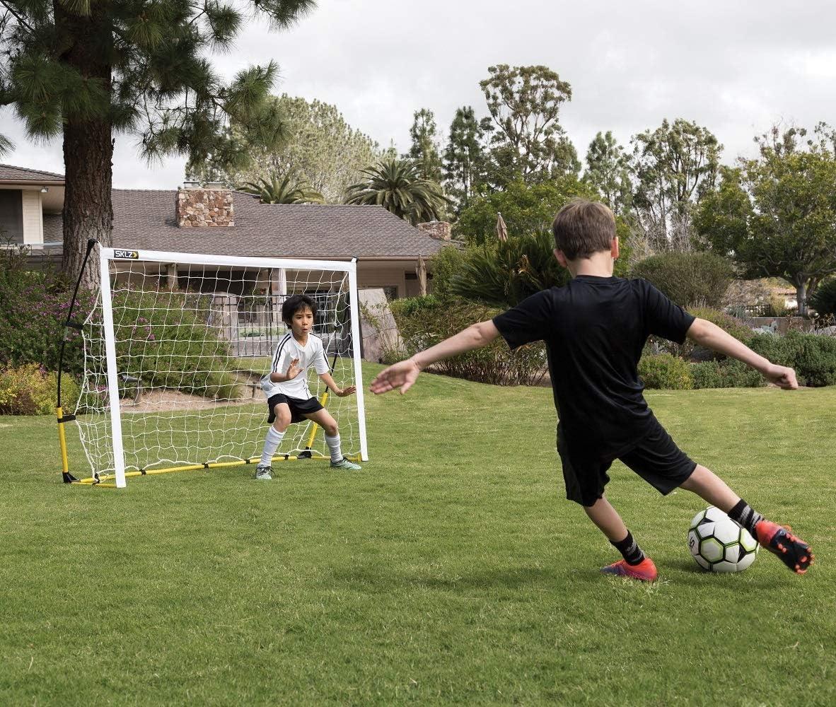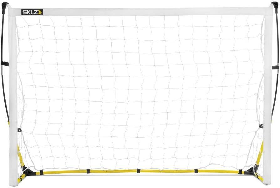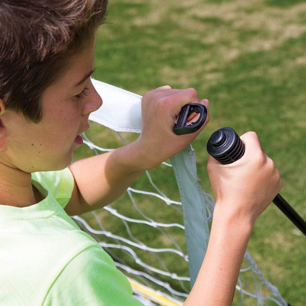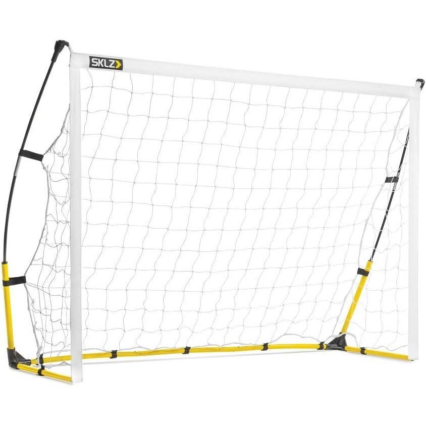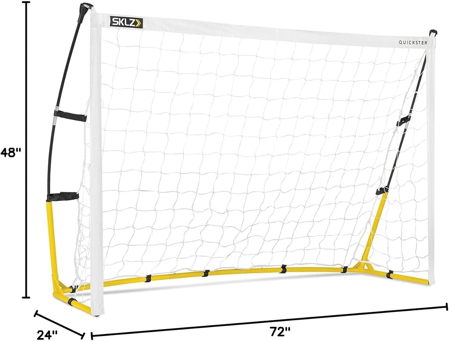 Don't miss out on valuable practice time with the SKLZ Quickster Soccer Goal and net. Whether you're a novice or elite soccer player, this portable soccer goal lets you hone your shooting accuracy, practice your ball control to become the player you've always aspired to be. This soccer goal and net easily transforms your backyard into a soccer training field so you can practice your skills at home. Thanks to its heavy gauge frame, reinforced corners, and ultra-durable 2-ply netting, this backyard soccer goal is built to withstand high-intensity training, kick after kick, eliminating the need for frequent net replacements. The innovative Tension-Tite Poles and click-lock tubing ensure a secure and stable frame for fast, easy setup, while the hook-and-loop net attachments keep the soccer net in place, even during powerful shots, so you can stay focused on perfecting your skills. Additionally, this outdoor soccer goal includes metal stakes to provide stability on grass or other surfaces, ensuring your goal stays put. The lightweight SKLZ Quickster Soccer Goal also comes with its own carrying case with built-in handle, making it easy to transport to the field or your backyard for soccer practice whenever you want.