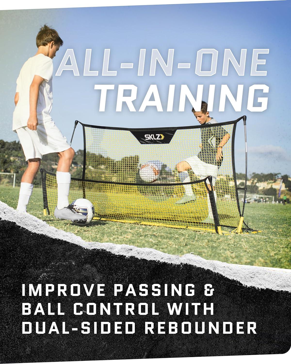 SKLZ Quickster Soccer Trainer – Dual-Sided Rebounder for Solo Passing, Receiving, Trapping Practice – Large & Small Rebound Net – Weather Resistant – Adjustable Frame, Metal Stakes & Carry Bag(Soccer Trainer)